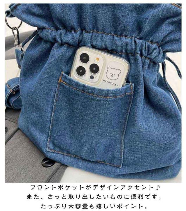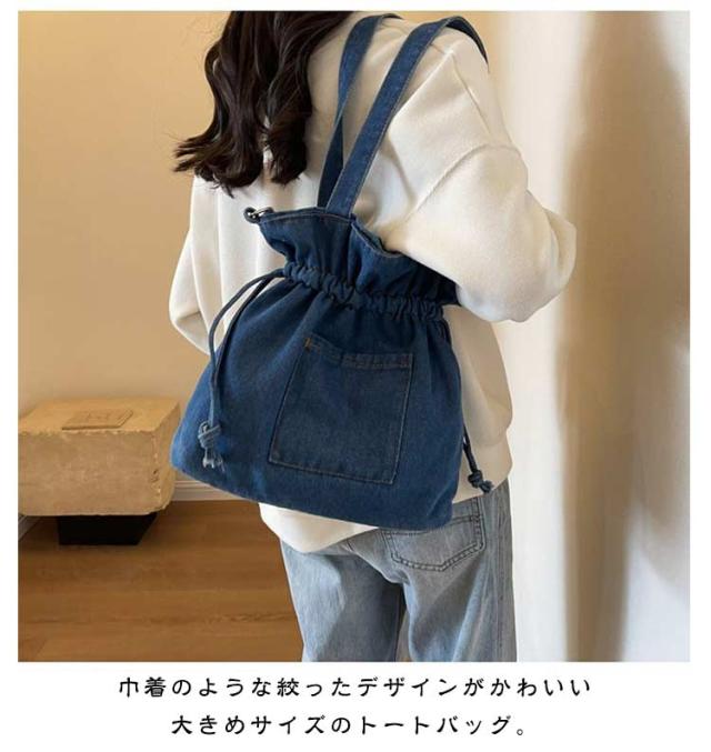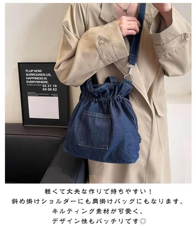 ショルダー ショルダーバッグ レディース 巾着バッグ 巾着 シンプル デニム ショルダーバッグ バッグ 斜めがけ かばん 巾着ショルダーバッグ おしゃれ かわいい 大きめ 黒 軽量 ブラック 大容量 韓国 レディースバッグ