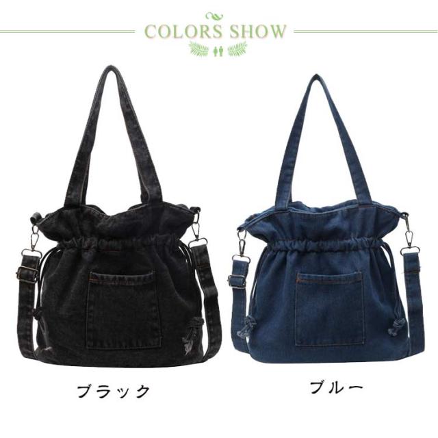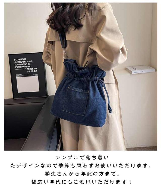 デニム シンプル ショルダーバッグ 大容量 ショルダー 斜めがけ ドローストリング レディース バッグ おしゃれ 大きめ 巾着ショルダーバッグ ショルダーバッグ かわいい かばん 巾着バッグ 巾着 ブラック 黒 韓国 レディースバッグ