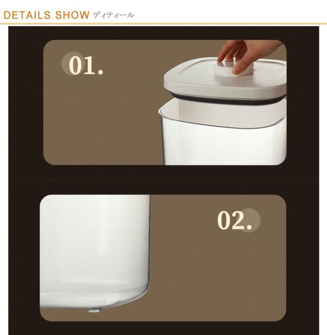 | 負圧真空原理を採用し、蓋をすると自動的に容器内の空気を抜き、容器内をほぼ真空状態。 食品レベルのPET材質を使用、高品質で匂いなし、防湿、頑丈で耐久性が強い、ペットの安全を守ります。 ドライフードを密封保存、ペットフード以外の米、小麦粉等の保存にもお勧めします! 虫や湿気から食品を守り、保存期間を延ばす優れた真空保存容器。 12 ポンドペットフードを簡単に、安全に保存できます。 オープンデザインバレルでお手入れ簡単。保存容器は丸洗いできて清潔に保てます。 | |