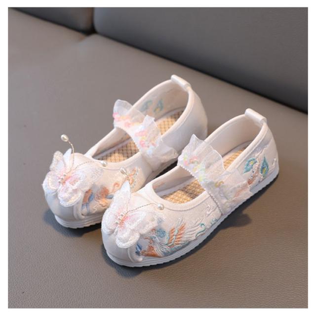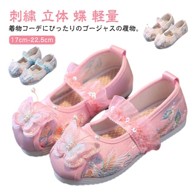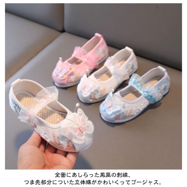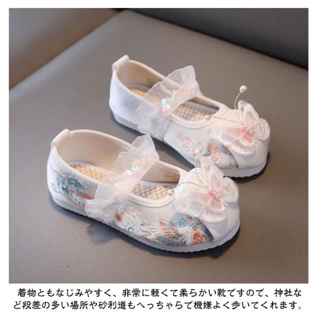 キッズ 和装 七五三 子供靴 女の子 スリッポン フリル 七五三 蝶 草履のかわりに履ける 和柄の靴 物 草履 軽量 刺繍 走れる 立体 和服 おしゃれ 歩きやすい 可愛い 古典 民族風 イベント お祭り 痛くない 草履 ホワイト ピンク
