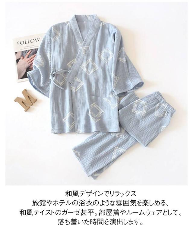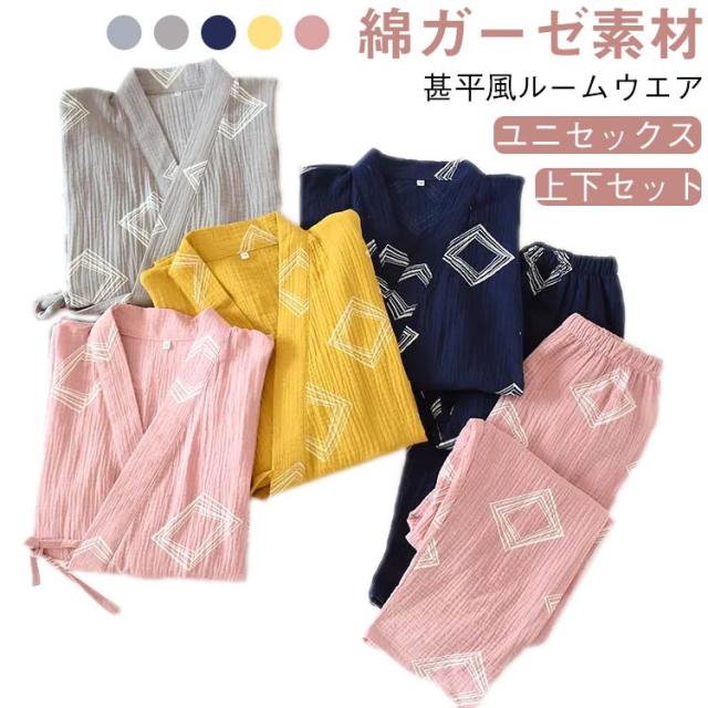 和風 メンズ ルームウェア 甚平 お風呂 浴衣 ねまき 甚平 綿 浴衣 前開き 春 秋 吸汗吸湿 パジャマ コットン 女性 ガーゼ 部屋着 旅館 上下セット 通気性 レディース 作務衣 ホテル 二重 カップル 男女兼用 パジャマ 夏 M L