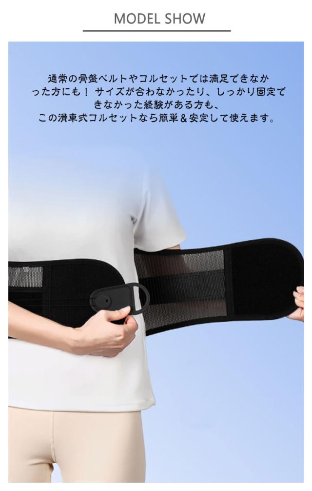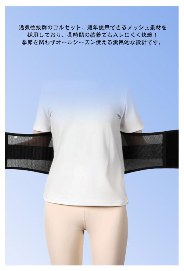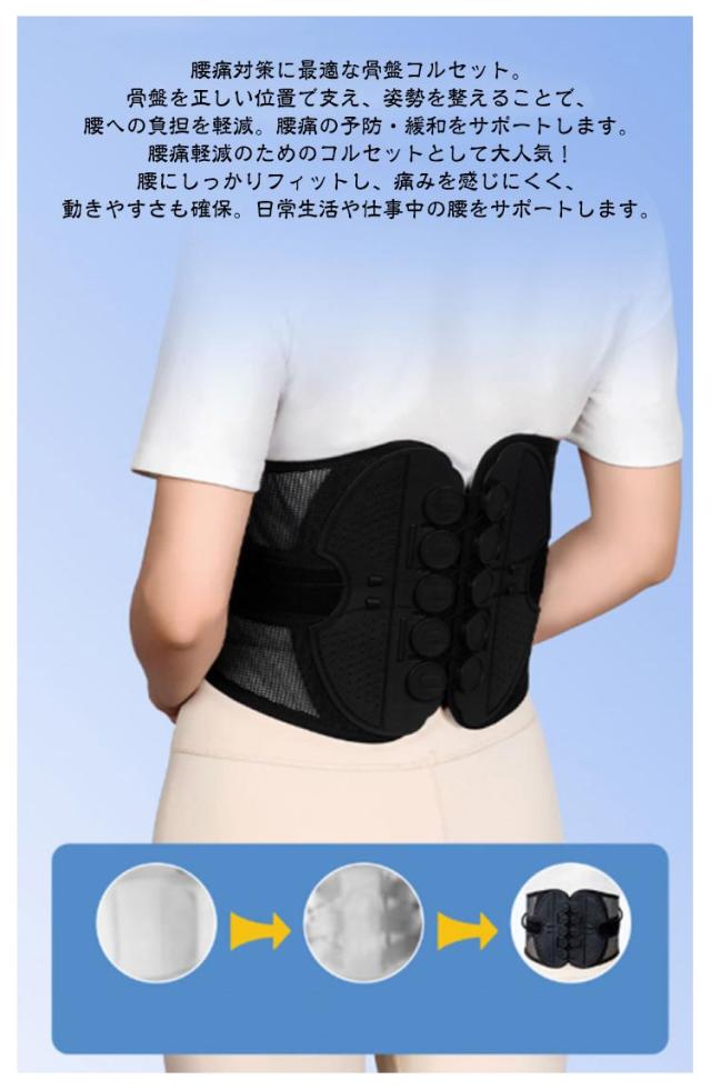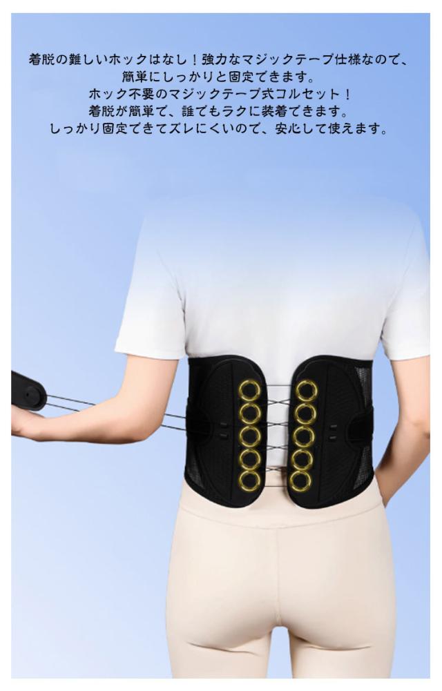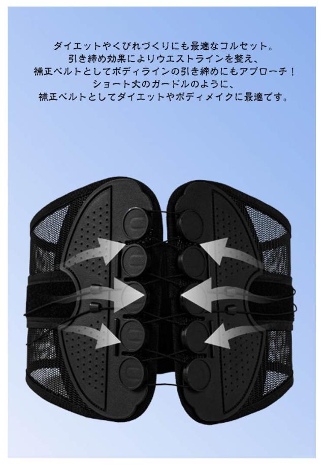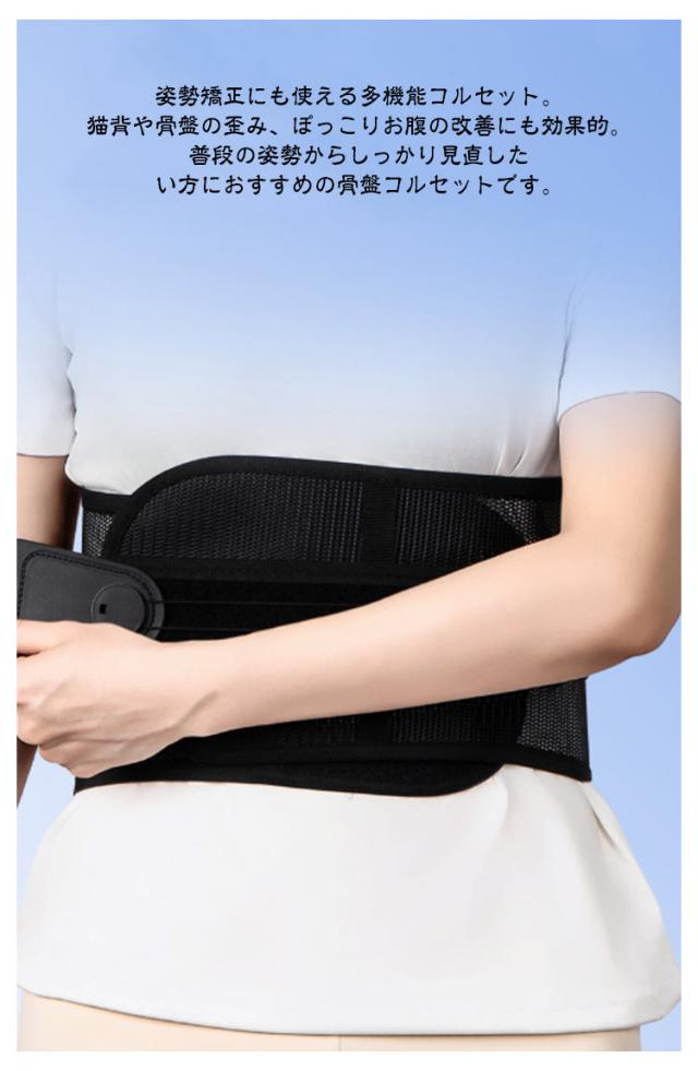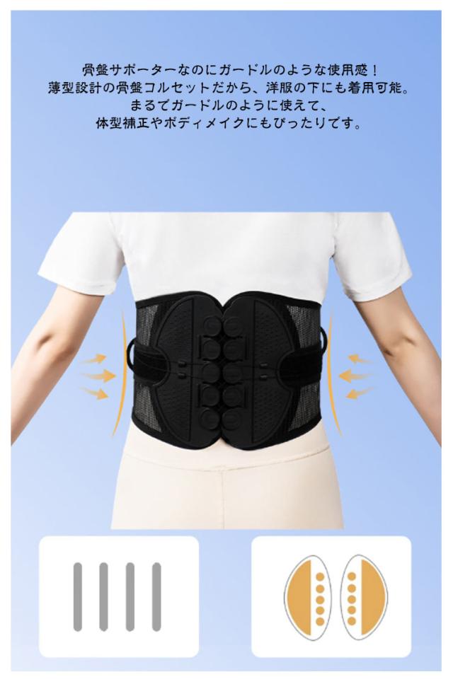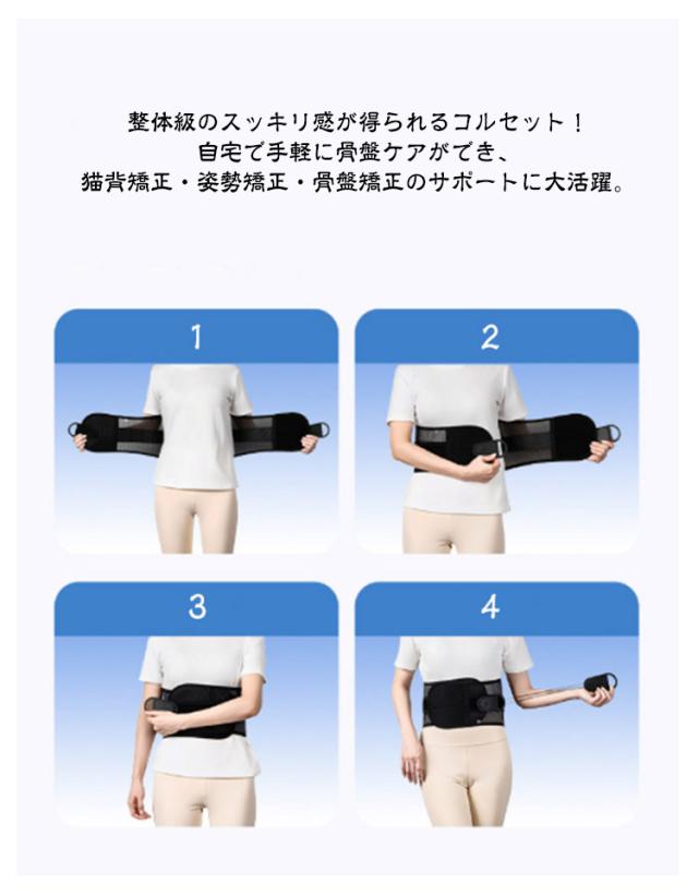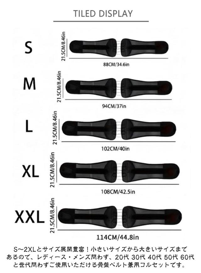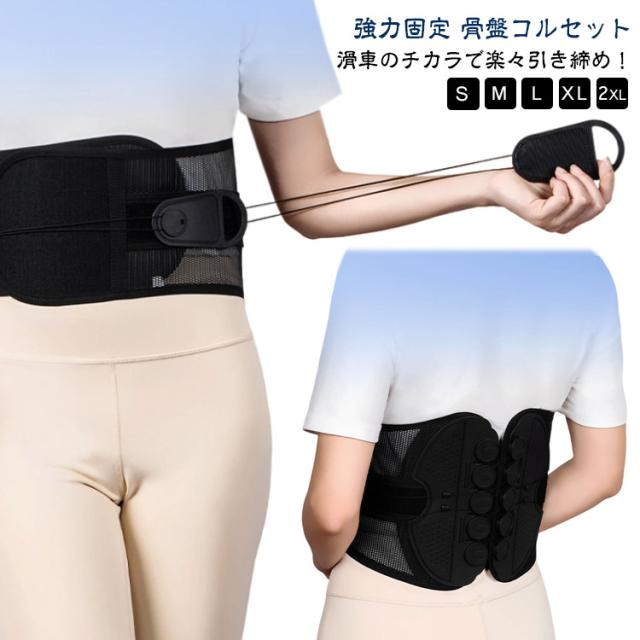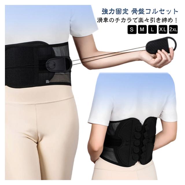 | 滑車のチカラで楽々引き締め!強力固定 骨盤コルセット 軽い力でしっかり固定できるコルセット! 滑車が内蔵された構造で、滑車の原理を活かし、弱い力でもしっかりと骨盤を引き締めることができます。 通常の骨盤ベルトやコルセットでは満足できなかった方にも! サイズが合わなかったり、しっかり固定できなかった経験がある方も、この滑車式コルセットなら簡単&安定して使えます。 腰痛対策に最適な骨盤コルセット。骨盤を正しい位置で支え、姿勢を整えることで、腰への負担を軽減。腰痛の予防・緩和をサポートします。 腰痛軽減のためのコルセットとして大人気!腰にしっかりフィットし、痛みを感じにくく、動きやすさも確保。日常生活や仕事中の腰をサポートします。 姿勢矯正にも使える多機能コルセット。猫背や骨盤の歪み、ぽっこりお腹の改善にも効果的。普段の姿勢からしっかり見直したい方におすすめの骨盤コルセットです。 通気性抜群のコルセット。通年使用できるメッシュ素材を採用しており、長時間の装着でもムレにくく快適!季節を問わずオールシーズン使える実用的な設計です。 着脱の難しいホックはなし!強力なマジックテープ仕様なので、簡単にしっかりと固定できます。 ホック不要のマジックテープ式コルセット!着脱が簡単で、誰でもラクに装着できます。しっかり固定できてズレにくいので、安心して使えます。 S〜2XLとサイズ展開豊富!小さいサイズから大きいサイズまであるので、レディース・メンズ問わず、20代 30代 40代 50代 60代と世代問わずご使用いただける骨盤ベルト兼用コルセットです。 腰痛が気になる方、猫背やぽっこりお腹が気になる方、姿勢の歪みが気になる方、むくみが気になる方、腰に負担がある作業をする方、産前産後の骨盤ケア、家事や仕事をしながら体型改善など…様々なシーンでご使用いただけます。 骨盤ベルトとコルセットのいいとこ取り!オフィスやリモートワークでデスクワークが多い方、おうち時間が多く座っている時間が長い方にもオススメです。 骨盤サポーターなのにガードルのような使用感!薄型設計の骨盤コルセットだから、洋服の下にも着用可能。まるでガードルのように使えて、体型補正やボディメイクにもぴったりです。 整体級のスッキリ感が得られるコルセット!自宅で手軽に骨盤ケアができ、猫背矯正・姿勢矯正・骨盤矯正のサポートに大活躍。 ダ | |