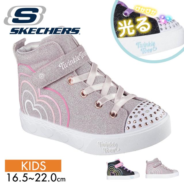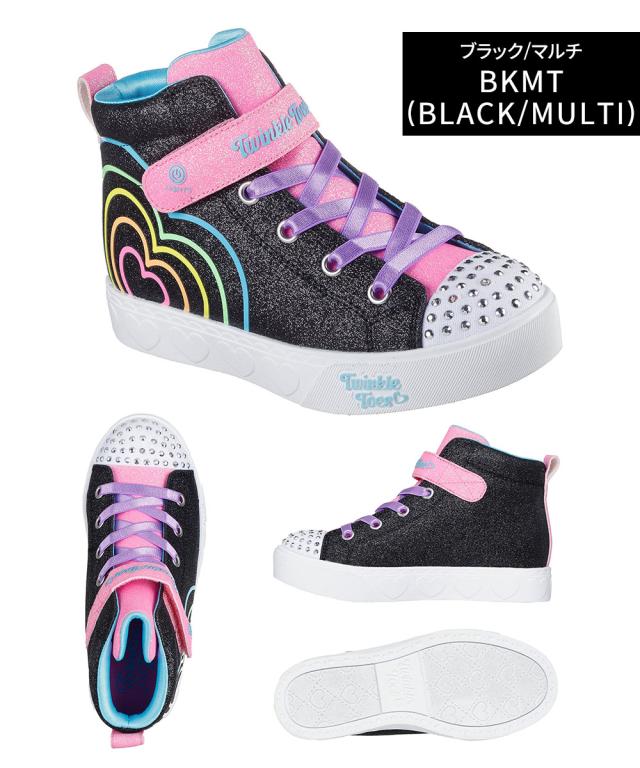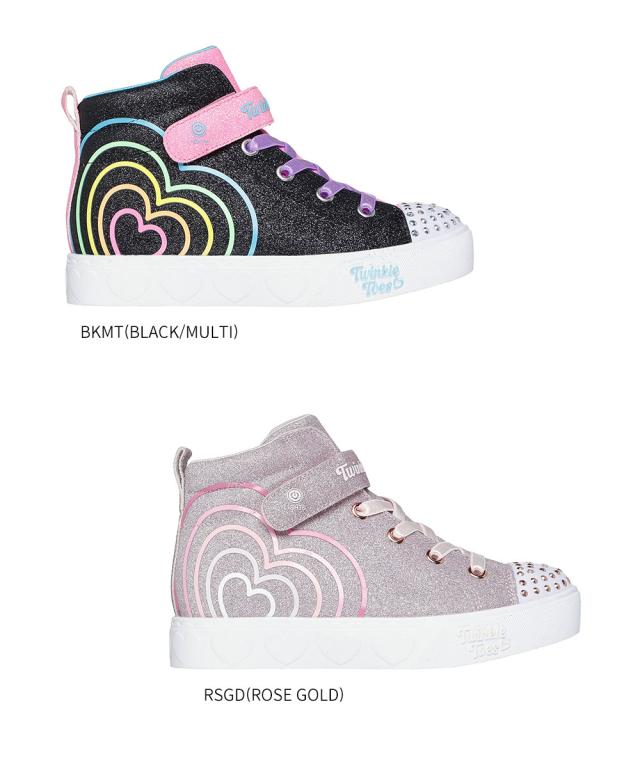 スケッチャーズ スニーカー キッズ 子供靴 女の子 ハイカット 光る靴 スイッチ付き マジックテープ ジュニア シューズ ガールズ かわいい SKECHERS ハート ステップス ハート グロウ 黒 ブラック ピンク 314623L