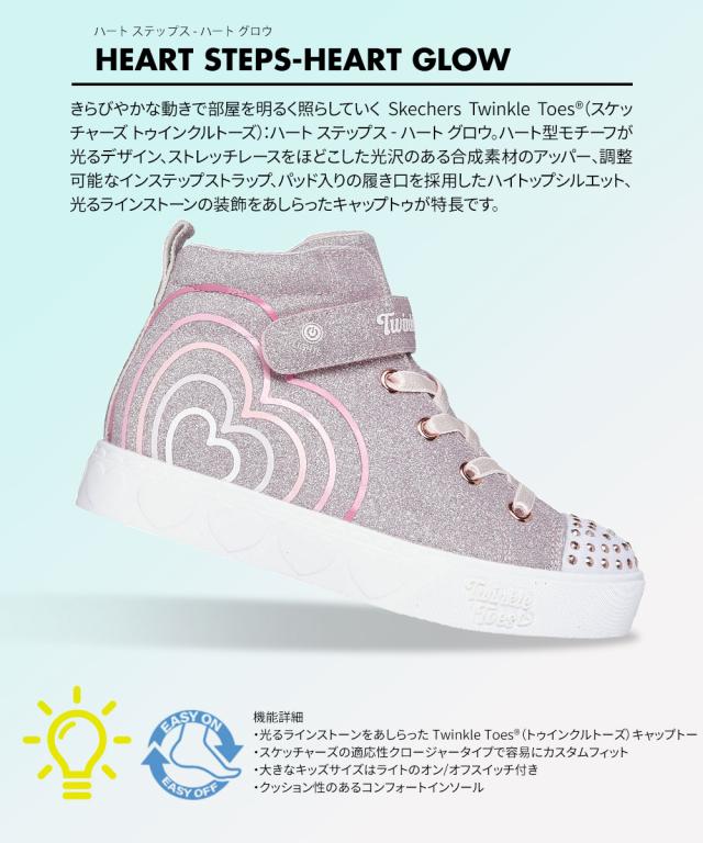 きらびやかな動きで部屋を明るく照らしていく Skechers Twinkle Toes(スケッチャーズ トゥインクルトーズ):ハート ステップス - ハート グロウ。