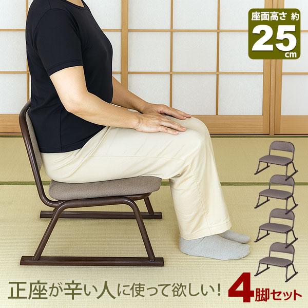 4脚セット 座椅子 脚付き 高座椅子 座面高さ25cm 完成品 幅52cm 奥行46cm 高さ45cm ブラウン ファブリック おしゃれ 法事用 座敷 椅子 仏壇椅子 法要 座いす 和室 椅子 低い椅子 高齢者 集会所 スタッキングチェア 丈夫 軽い コンパクト 積み重ね可能 組み立て不要 ERCL-800