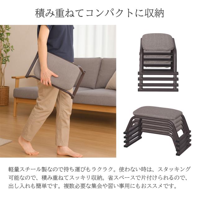 ・スチール製のしっかりとしたフレームに、クッション性のある座面を備え、安定感と座り心地を両立。