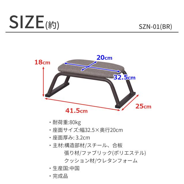正座椅子 背もたれなし スツール 座面高さ18cm 完成品 (約)幅42cm 奥行25cm 高さ18cm あぐら座椅子 ブラウン ファブリック おしゃれ 法事用 正座補助 和室 低い椅子 高齢者 子供 集会所 スタッキングチェア 丈夫 軽い コンパクト 積み重ね可能 組み立て不要 1脚単品 SZN-01