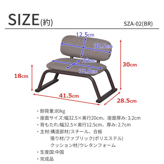 正座椅子 背もたれ付き 座面高さ18cm 完成品 (約)幅42cm 奥行29cm 高さ30cm あぐら座椅子 ブラウン ファブリック おしゃれ 法事用 正座補助 和室 椅子 低い椅子 高齢者 子供 集会所 スタッキングチェア 丈夫 軽い コンパクト 積み重ね可能 組み立て不要 1脚単品 SZA-02