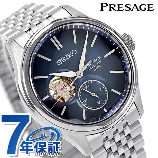 【メモパッド付】セイコー プレザージュ クラシックシリーズ 自動巻き 腕時計 ブランド メンズ コアショップ専用モデル 流通限定モデル オープンハート SEIKO PRESAGE SARJ011 ネイビー 日本製 高級 おしゃれ 防水 プレゼント 男性 実用的