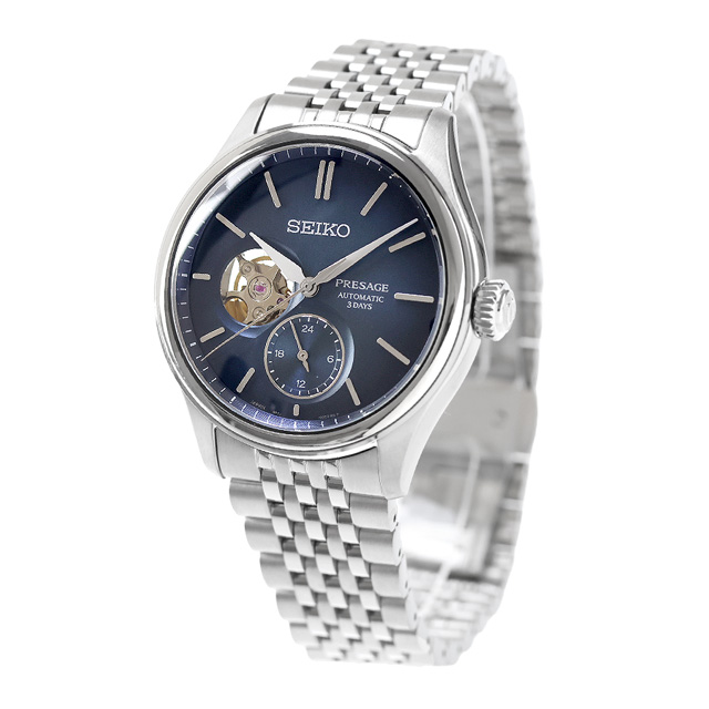 セイコー プレザージュ クラシックシリーズ 自動巻き 腕時計 ブランド メンズ コアショップ専用モデル 流通限定モデル オープンハート SEIKO PRESAGE SARJ011 ネイビー 日本製 高級 おしゃれ 防水 プレゼント 男性 実用的