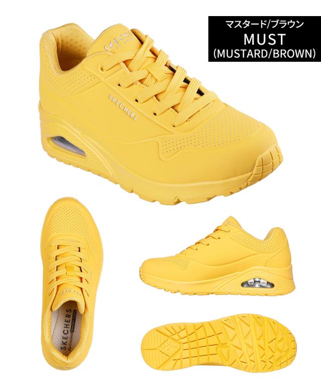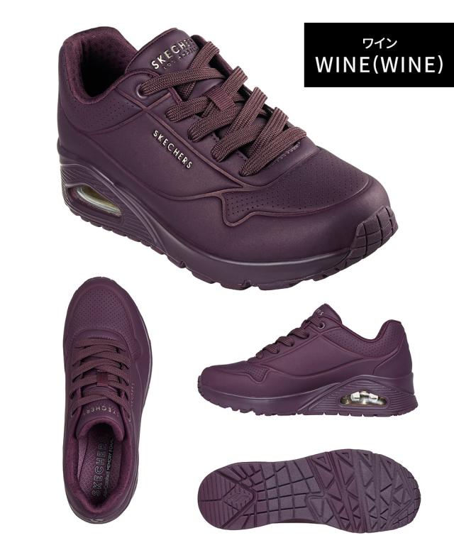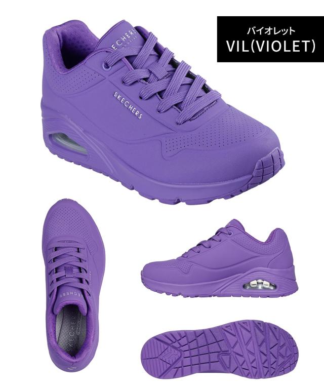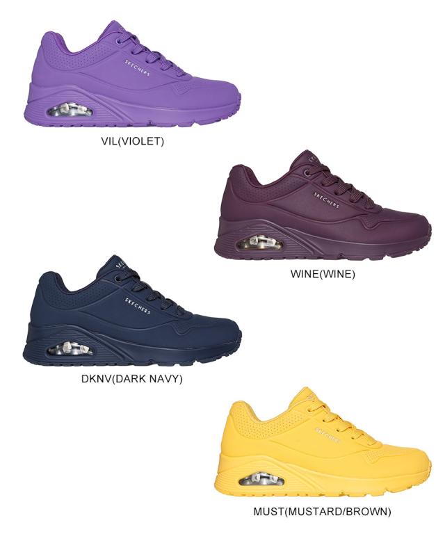スケッチャーズ スニーカー レディース ローカット 厚底 シューズ 女性用 靴 通気性 エアーソール 疲れにくい ブランド SKECHERS ストリート ウノ スタンド オン エア パープル ネイビー イエロー ワインレッド 73690
