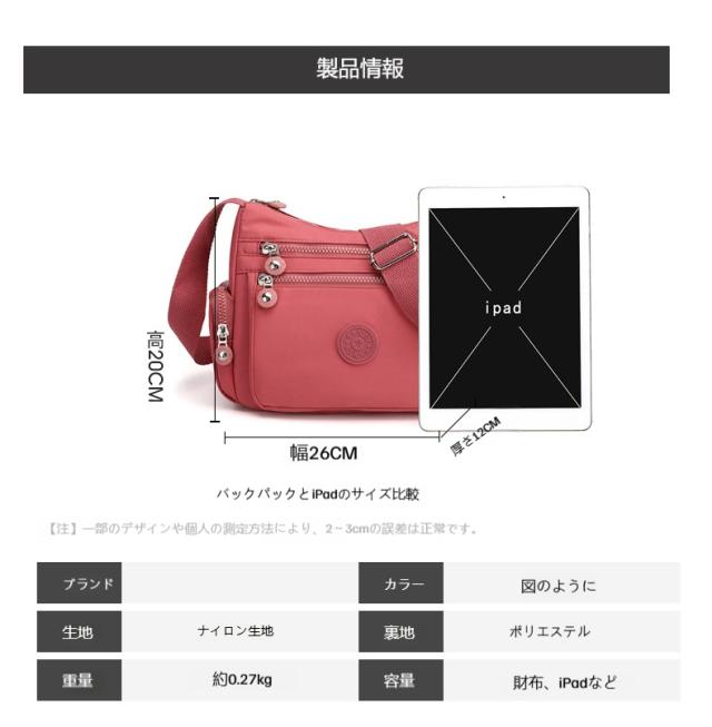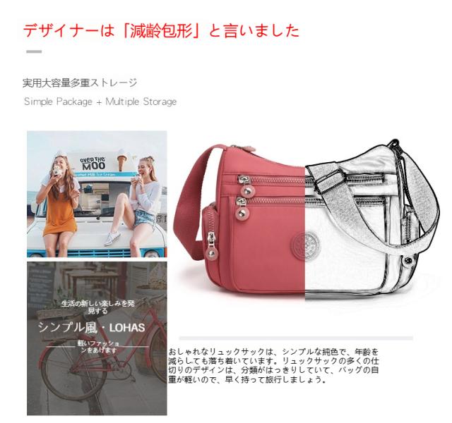 コンパクト収納、旅行用バッグ、ナイロンショルダー、軽量バッグ、マザーズバッグ、大容量ショルダー、斜め掛け、レディースバッグ