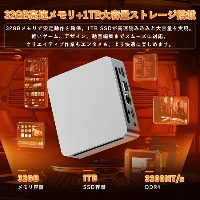 ミニPC 新品 office付き mini pc パソコン デスクトップパソコン windows11 Pro AMD高性能CPU Ryzen R5 R7 R9 8K 3画面出力 WiFi6 Bluetooth5.2 メモリ32GB SSD1TB 大容量 小型 ゲーミング PC 軽量 初心者向け 省エネ