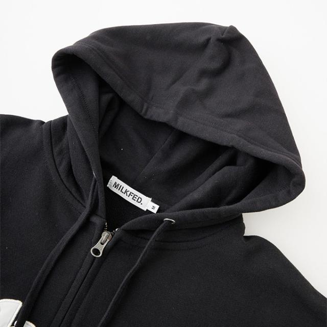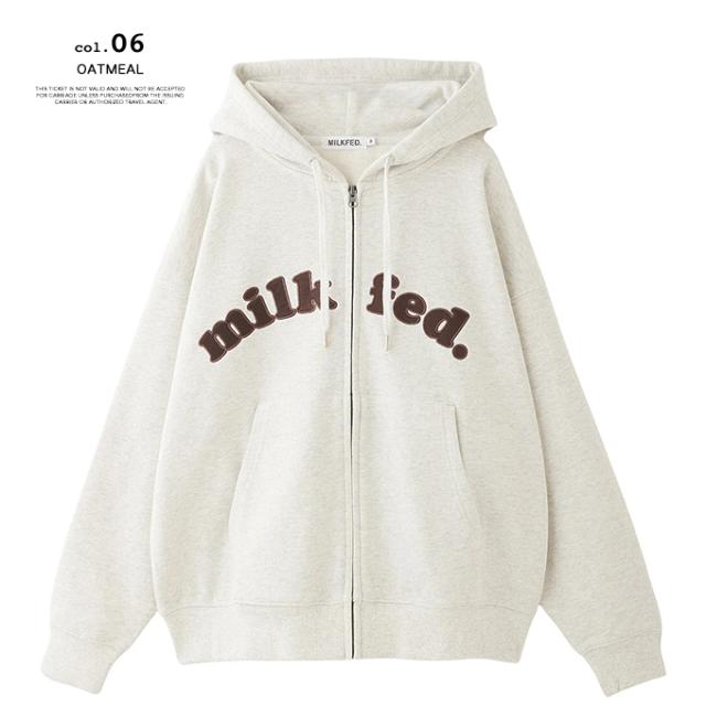 「 MILKFED. ミルクフェド 」 ARCH COOPER LOGO ZIP UP HOODIE アーチ クーパー ロゴ ジップアップ フーディー 103253012001 / MILKFED. ミルクフェド ジップアップ スウェット フーディー トレーナー 長袖 クーパーロゴ ワッペン 裏毛 2025AW