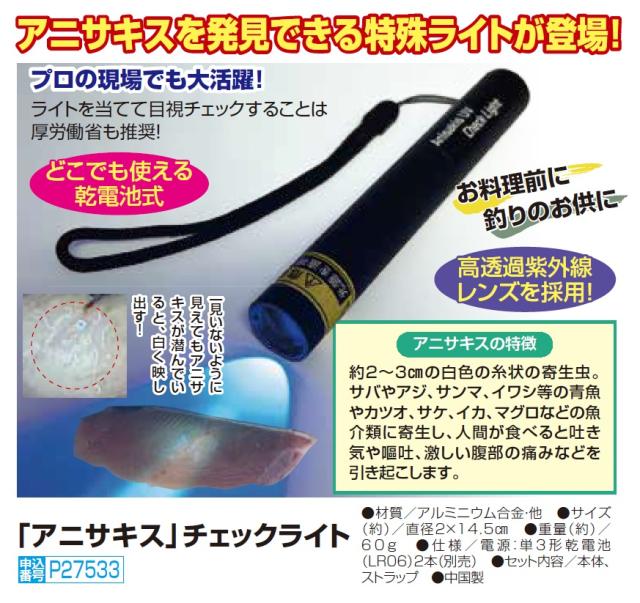 「アニサキス」チェックライト 乾電池式 高透過紫外線レンズ 電池式 omu p27533