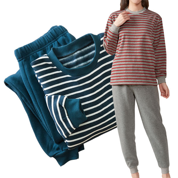 ふんわりあったか裏起毛素材のボーダー柄パジャマ