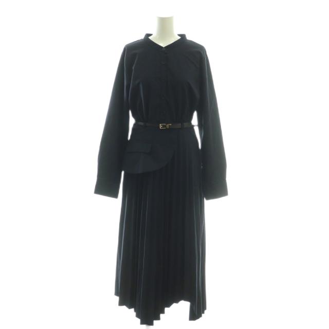 【中古】チーク Cheek コルセットベルト付きプリーツワンピース アシメントリー M 紺 /CX ■OS レディース