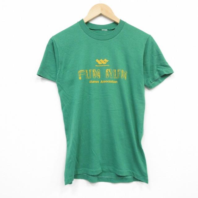 古着 半袖 ビンテージ Tシャツ メンズ 80年代 80s FUN クルーネック 緑 グリーン Sサイズ 中古 中古 古着