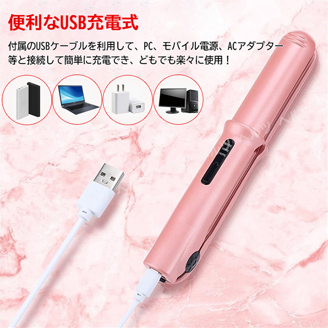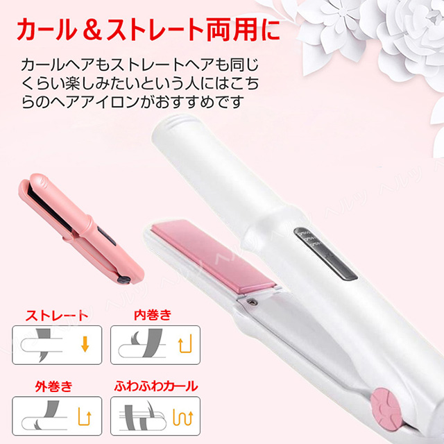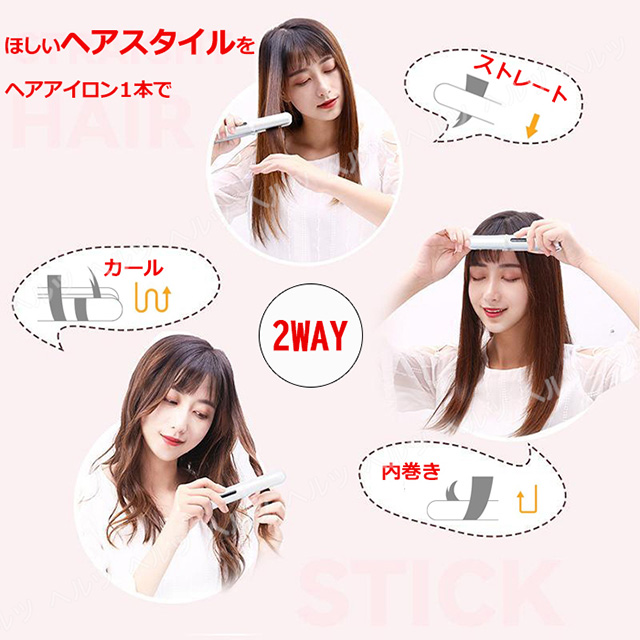 「クーポン配布中」「即納」ヘアアイロン ストレート ヘアアイロン ミニ コードレス ヘアアイロン 2way ヘアアイロン サロニア ヘアアイロン カール ヘアアイロン 充電式 USB 前髪カール 3段階温度調節 やけど防止 誤動作防止 収納袋付き モバイルバッテリー機能 プレゼント