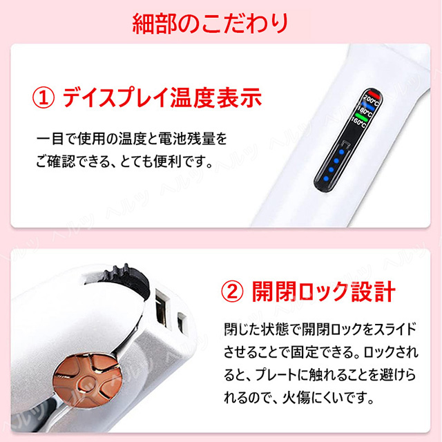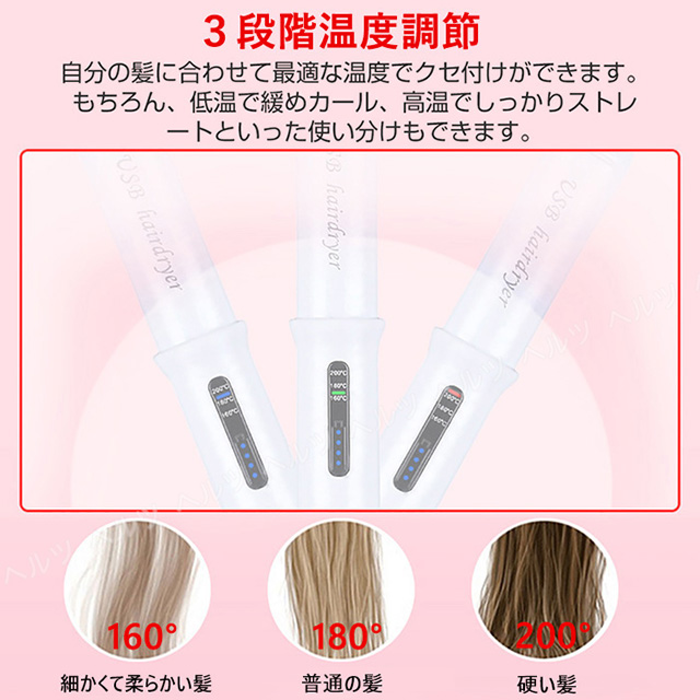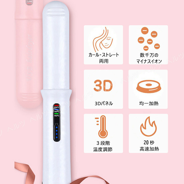 【3段階の温度調節】160℃、180℃、200℃温度設定ができ、髪質に合わせた最適な温度で、髪の美しさを最大限に引き出すことができます。髪の毛に均一に熱が伝わり、ストレートもカールもスタリングが楽々仕上がります。