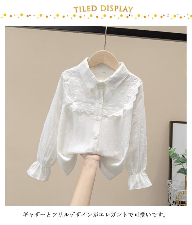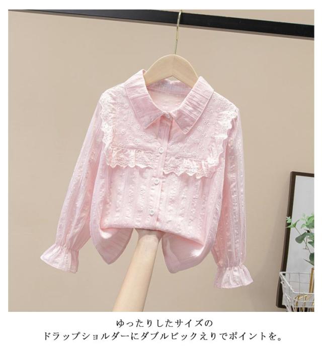 秋 レース 長袖 前開き 刺繍 春 春秋 キッズ かわいい 子供服 花柄 ユニセックス ブラウス ビックカラー 無地 シンプル 薄手 女の子 フリル 可愛い 学生 ジュニア シャツ 韓国 110 女児 120 130 140 150 160 170 普段着 通学 カジュアル おしゃれ ギフト