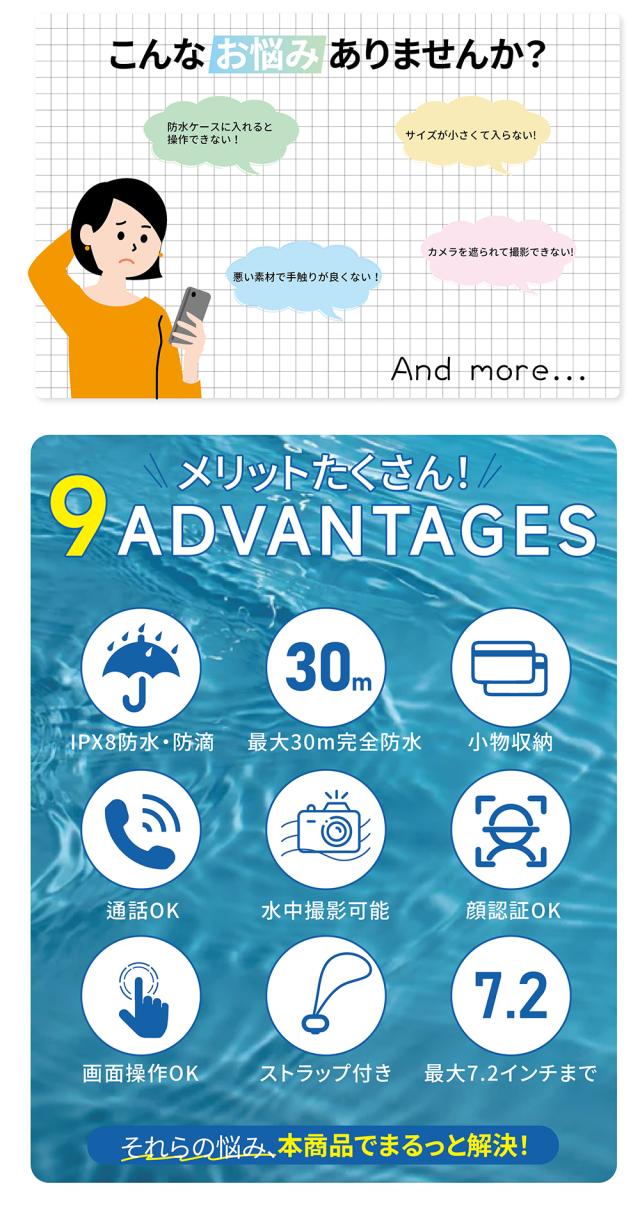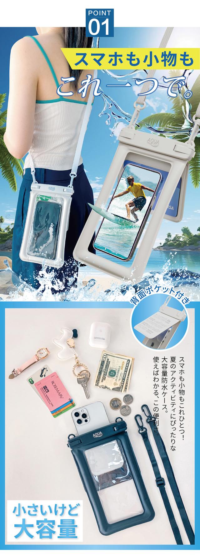 【20%OFFクーポン★超還元10%!】防水スマホケース 小物収納 シュノーケル ダブルポケット wポケット IPX8 完全防水 小銭入れ ストラップ付き 浮かぶ 浮く レジャー 水中撮影 浮く プール ショルダー 海の中 お風呂 アウトドア 首かけ 斜め掛け iPhone 通話対応