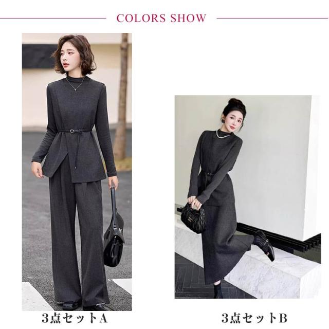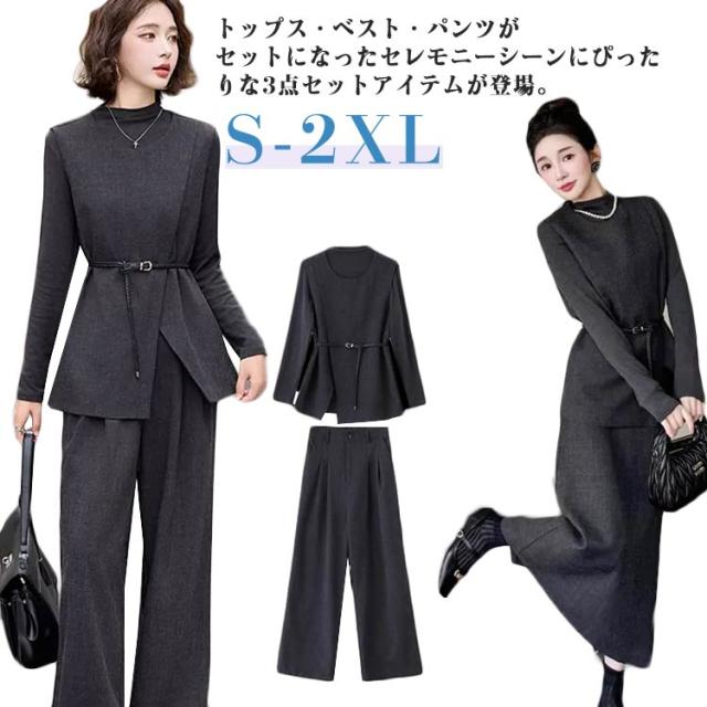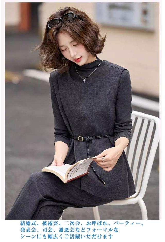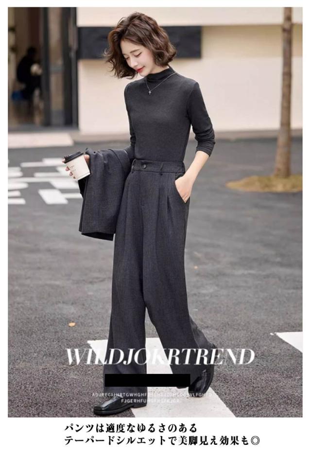 ロング パンツスーツ 長袖 パンツ 卒業式 ブラウス 秋 ワイドパンツ レディーススーツ パンツドレス セットアップ ガウチョパンツ 3点セット OL ママ スーツ オフィス レディース 通勤 着痩せ 春 セット 夏 冬 カジュアル セットアップ 入学式 結婚式 ママ 秋用