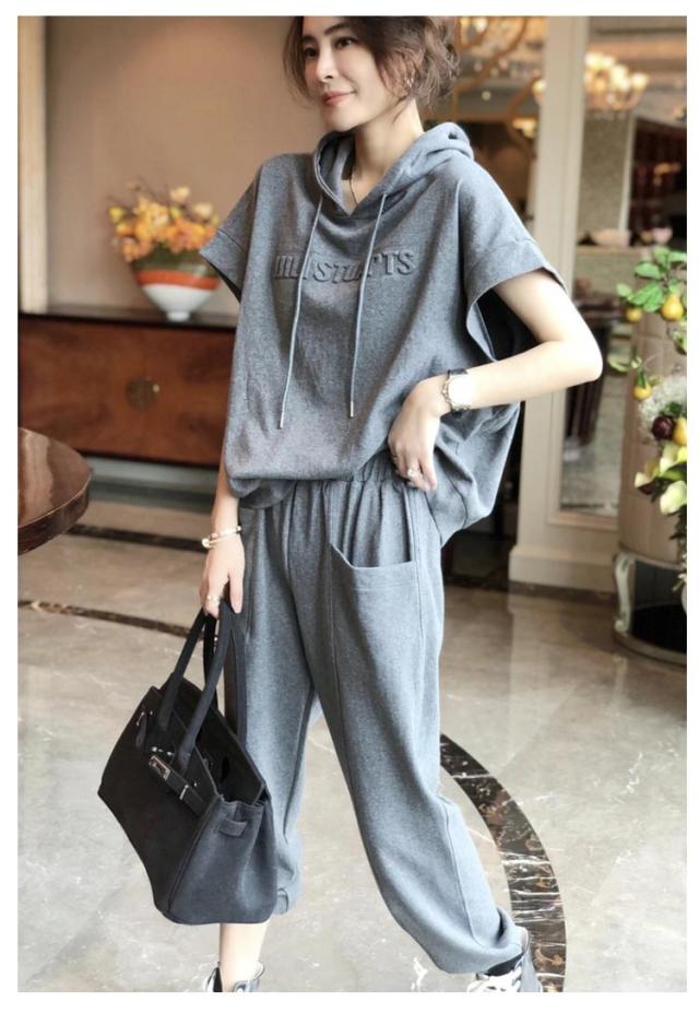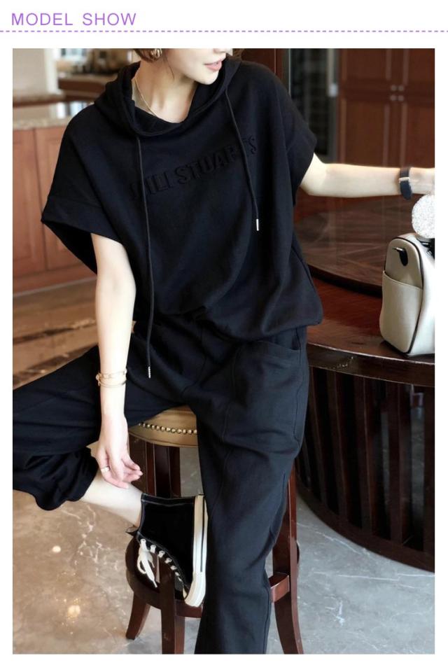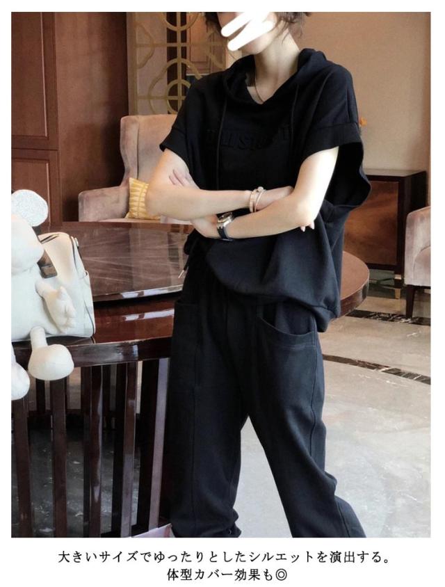 スウェット カジュアルセットアップ 夏 上下セット フード付き スウェットパンツ おしゃれ 体型カバー ジャージ 半袖 レディース 7分丈パンツ 無地 ゆったり カジュアルセットアップ 運動着 春秋 大きいサイズ 着痩せ 部屋着 シンプル スポーツ お出かけ ギフト ダンス衣装