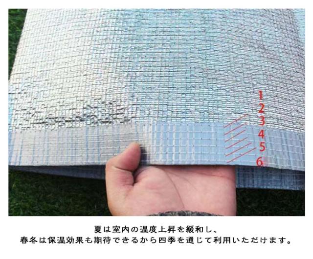 | 遮光率99%! 日光をはね返すアルミ日よけシェード。 窓などからの直射日光を防ぎ、室内の温度上昇を抑え、節電効果も◎ 西日対策として、窓、ベランダ、廊下、庭、玄関などはに張って日よけ・目隠しに◎ キャンプやBBQなどアウトドア時も大活躍。 大切な草花を暑い日ざしから守ります。 丈夫なテープで一周して丁寧にパイピングを施し、強度アップ! 夏は室内の温度上昇を緩和し、 春冬は保温効果も期待できるから四季を通じて利用いただけます。 | |