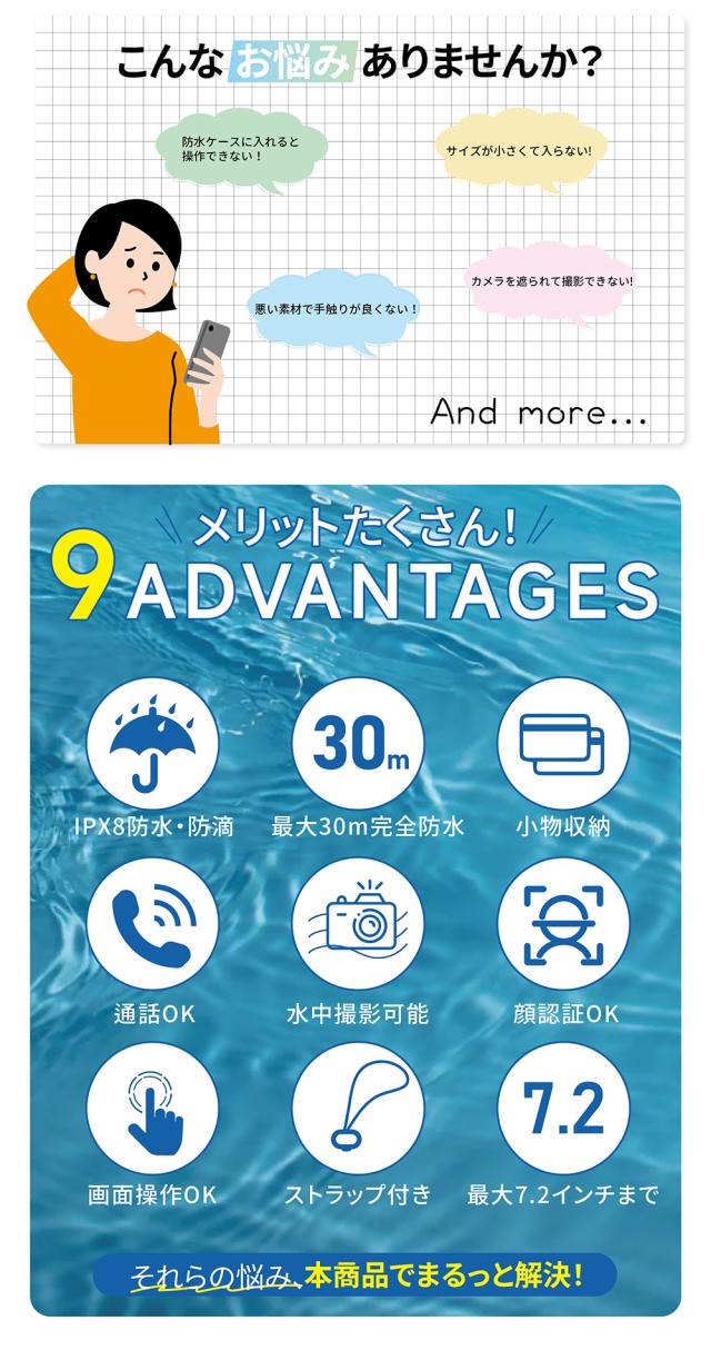【10%OFFクーポン対象★超還元10%!】防水スマホケース 小物収納 シュノーケル ダブルポケット wポケット IPX8 完全防水 小銭入れ ストラップ付き 浮かぶ 浮く レジャー 水中撮影 浮く プール ショルダー 海の中 お風呂 アウトドア 首かけ 斜め掛け iPhone 通話対応