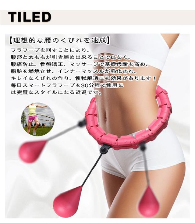 | 【理想的な腰のくびれを速成】フラフープを回すことにより、腰部と太ももが引き締め出来ることではなく、腰痛防止、骨盤矯正、マッサージで基礎代謝を高め、脂肪を燃焼させ、インナーマッスルが強化され、キレイなくびれの作り、便秘解消にも効果があります!毎日スマートフラフープを30分程で使用には完璧なスタイルになる近道です。 【脂肪燃焼の高速化】通常のフラフープの2〜3倍の速さで脂肪を燃焼させます。ウエストを強化するためには1日30分程、フラフープを使用することがオススメです。週5回、毎回30分以上スマートフラフープの使用は800カロリーを消耗出来ます。毎日20分のスマートフラフープの運動は、30分の水泳、45分のヨガ、30分のランニングで消耗した熱量相当です。 【調節可能なサイズ&回転効果を高める】サイズは自由に調節できます。自分のウエストサイズに合わせて、フラフープの一節を取り付けたり、取り外すことで、サイズを調整出来ます。重量ハンマーにより、回転効果を高めます。また、従来のスマートフラフープより、より簡単に組み立てます。 【マッサージ効果】使用時にマッサージ効果があり、磁気部品を使用すると、体重を減らしたりマッサージしたりするのに適した健康になります。 | |