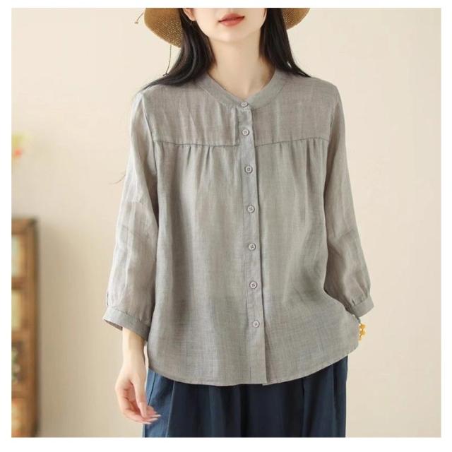 | 全5色 ブラウス 綿麻風素材で涼しく快適 シンプルで上品なデザイン、ナチュラルな雰囲気 ゆったりシルエットで体型カバー・細見え効果 7分袖デザインで春夏秋にぴったり 羽織りとしても着用できる便利な開襟シャツ デイリーコーデに合わせやすく、オフィスにもカジュアルにも◎ | |