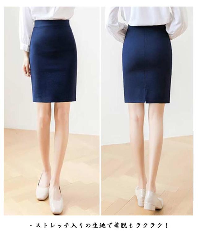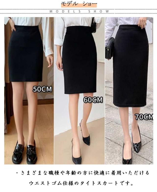 洗える スカート 制服 ウエストゴム レディース ストレッチ ボトム 選べる着丈 事務服 ビジネス オフィス タイトスカート 事務服 OL 企業 ユニフォーム ウォッシャブル