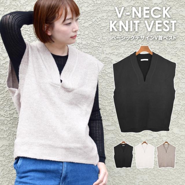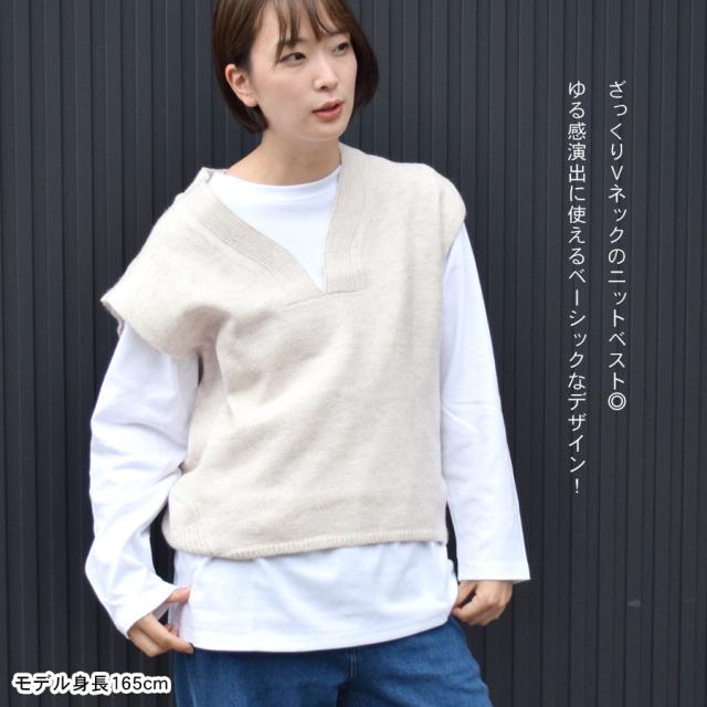 ニットベスト レディース Vネック ベスト プルオーバー トップス シンプル 定番 ざっくりV 大人 カジュアル オフィスカジュアル すっきり おしゃれ 重ね着 レイヤード 体型カバー ジレ 動きやすい fk25 (bdg515)