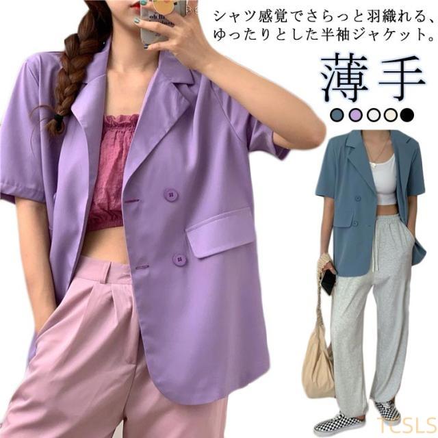 半袖ジャケット サマージャケット レディース 春 夏 テーラードジャケット 裏地なし 軽い 夏 薄手 ジャケット アウター ゆったり 春服 夏服 ブレザー 通勤 オフィスカジュアル 入園 入学 卒業式 送料無料
