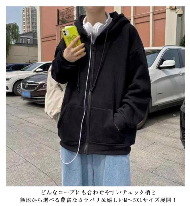 | 存在感とお洒落さを兼ね備えた大人パーカー。 厚すぎず薄すぎない程よい生地感のスウェット生地はストレスフリーな着心地です。 どんなコーデにも合わせやすいチェック柄と無地から選べる豊富なカラバリ&嬉しいM?5XLサイズ展開! | |