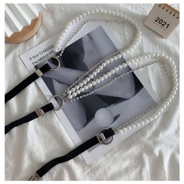 送料無料 サスペンダー レディース カジュアル 真珠付き パール 吊りズボン 吊りバンド ゴム ズボン吊り スカート ビジネス 結婚式 きらきら かわいい 小物 フォーマル おしゃれ お洒落