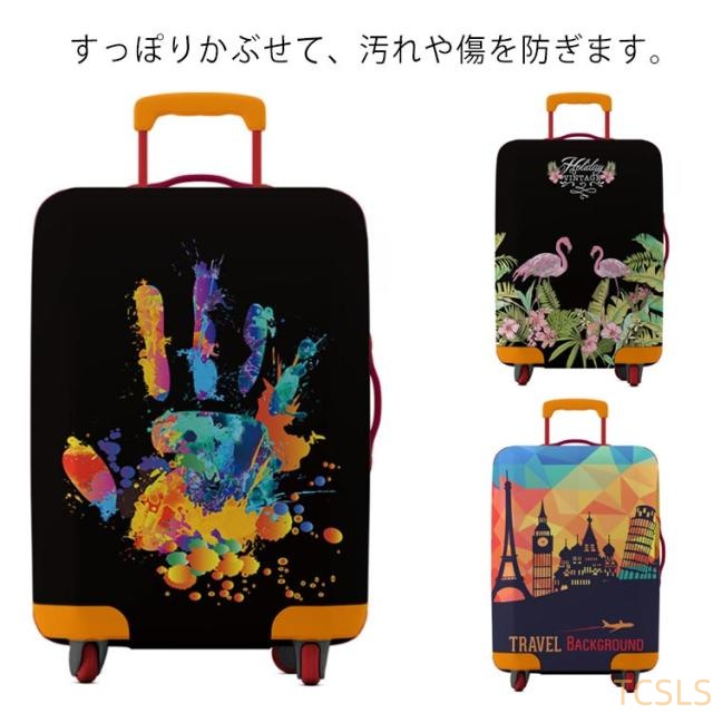 | すっぽりかぶせて、汚れや傷を防ぎます。 取手から通してファスナーとゴムベルトで留めるだけ! ハンドルやキャリーバーの引き出しやすさ、持ち運びを考慮したデザイン。 伸縮性のある生地でピタリとフィットします。 使用可能スーツケースサイズ:幅38?43×奥行25?27×高さ57?62cm 個性的なデザインで空港でも見つけやすいです! 汚れても洗えるからいつでも清潔♪ 使わないときは折りたたんでコンパクトに収納可能。 大切なスーツケースを長く綺麗に使うために、旅行の必需品としてひとつ持っておくととても便利です◎ | |