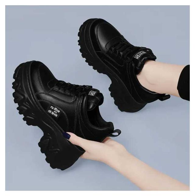ウォーキングシューズ 身長アップ7cm 軽量 女性 定番 幅広 美脚スニーカー 大人 PU 厚底スニーカー ダッドスニーカー 厚底 靴 通勤 通学 スニーカー カジュアル レディース シューズ ローカット 仕事 人気 厚底 韓国風 脚長効果 シンプル ブラック