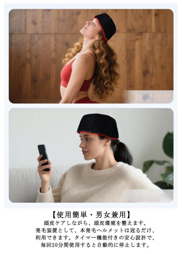 | 【赤色LEDによる】頭皮に赤色LEDを照射することで、毛を促すことができます強力な浸透、髪の豊かさと強さを再現します。 【LED照射器ヘアビーム】毎日ただ頭に被るだけでヘアケアが可能なヘアビーム。ご自宅で「ながらケア」ができるヘアビームは軽量化を実現し、頭皮全体に刺激を与える適量の重さで首への負担も少なく、使用直後から育毛効果を得られます。この頭皮キャップは本体の重量わずか125g、軽くてコンパクトで長時間の使用による首への負担も軽減です。 【使用簡単・男女兼用】頭皮ケアしながら、頭皮環境を整えます。発毛装置として、本発毛ヘルメットは冠るだけ、利用できます。タイマー機能付きの安心設計で、毎回20分間使用すると自動的に停止します。 | |