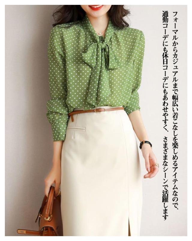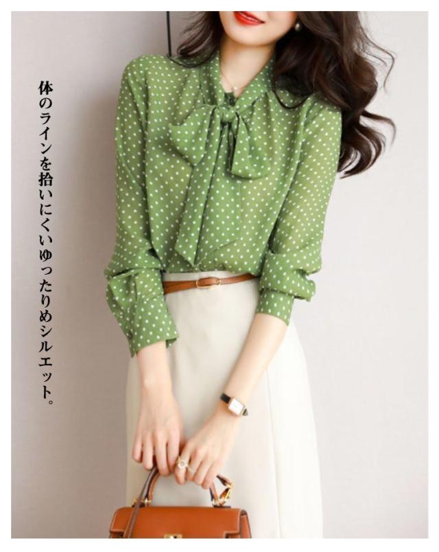 水玉 ボウタイブラウス ボウタイリボン 入園式 ブラウス ドット リボンタイ シャツブラウス 長袖 トップス フォーマルブラウス オフィス レディース 春秋 大きいサイズ 華やか 卒園式 ボウタイブラウス 母 ママ