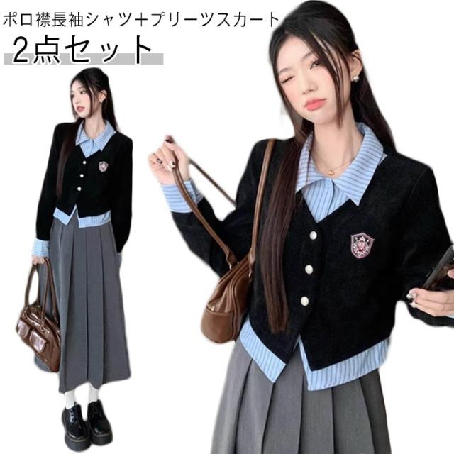 スカート 韓国 付き 制服 韓国 トップス ポロ襟 卒業式 ロング丈 スカート 学院風 おしゃれ スクール スーツ 女の子 高校生 入学式 レーディス 成人式 コスプレ 通学