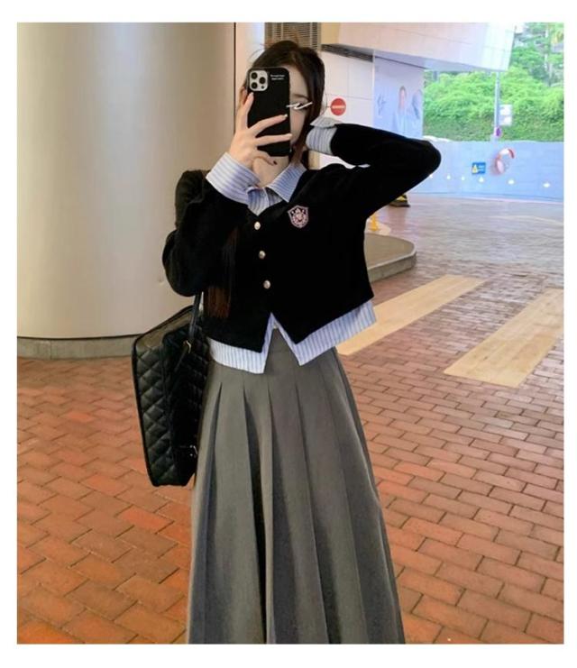 | ポロ襟長袖シャツ+プリーツスカート 2点セット フェイクレイヤード風トップスでおしゃれ度アップ ポロ襟×長袖シャツで知的・清楚な雰囲気 ハイウエストプリーツスカートで脚長効果抜群 胸元がクラシカルで学院風を演出 通学コーデや舞台衣装、デイリーにも着回しOK | |