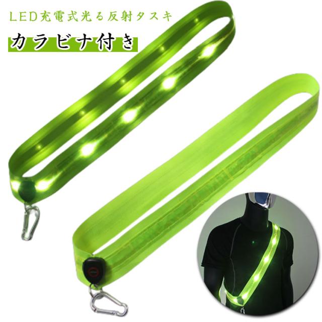 | ・LED充電式光る反射タスキ ・カラビナ付き ・夜間の作業やジョギング、犬の散歩時に車や自転車からの視認性を上げ、追突対策に役立ちます。 | |