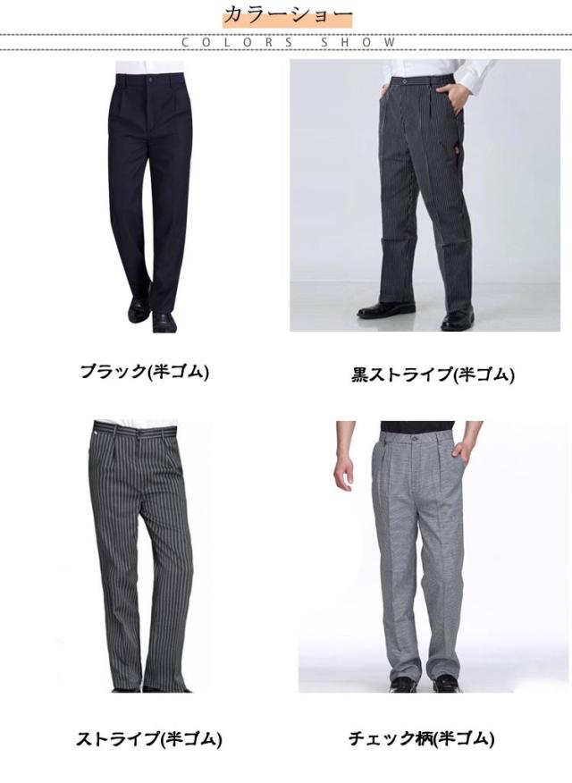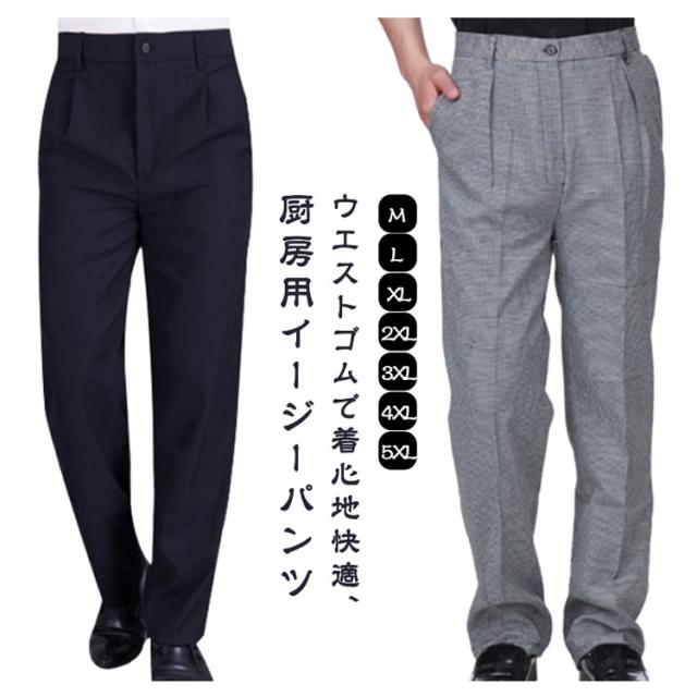 厨房用 スラックス ズボン 黒ズボン ウェストゴム メンズ コックパンツ ユニフォーム ロングパンツ 接客 厨房服 飲食業 レストラン キッチン 居酒屋 厨房用 制服 仕事用