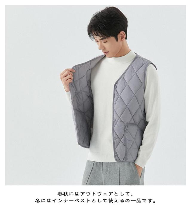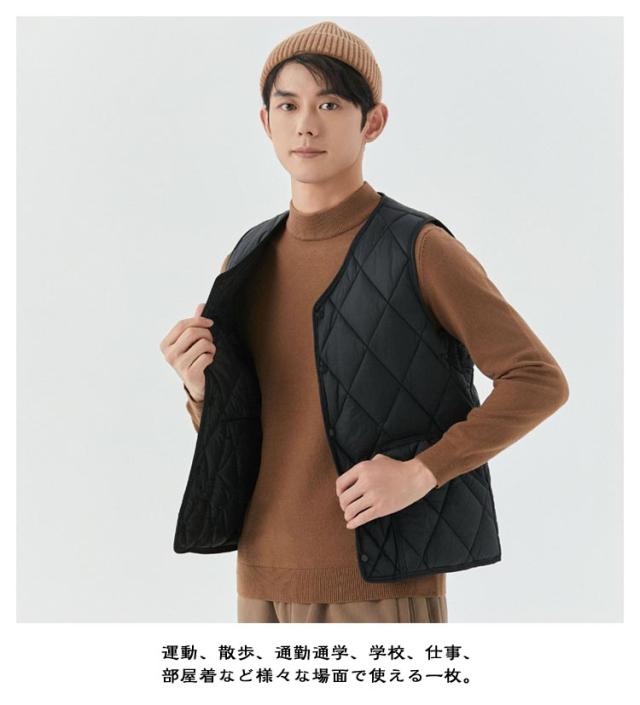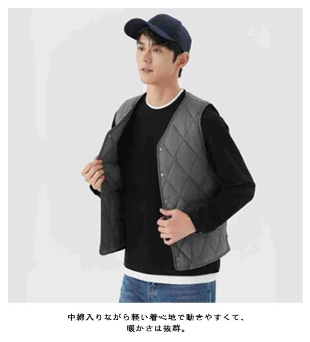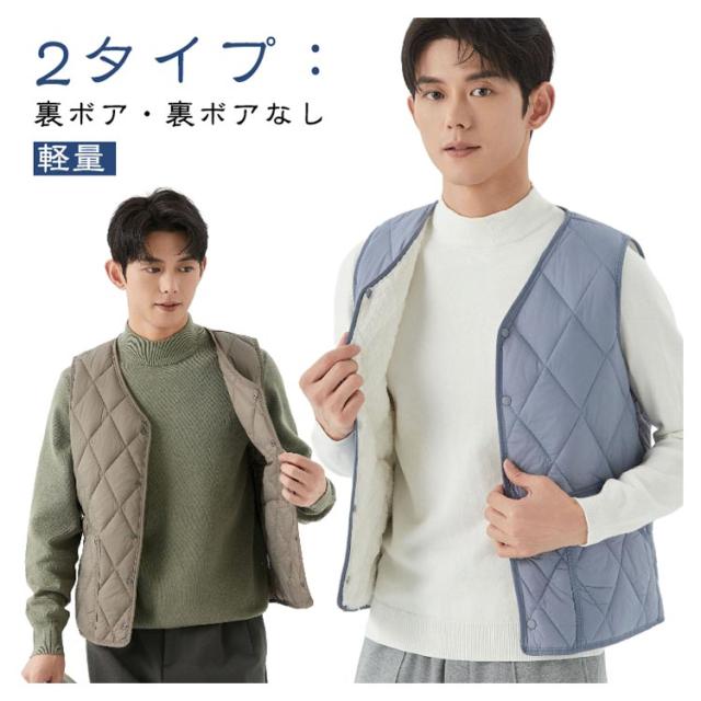 インナーベスト ベスト 暖かい Vネック 秋冬 中綿ベスト 防寒 軽量 メンズ レイヤード風 アウター 裏ボア 冬服 暖かい ライトアウター 防風 着痩せ 無地 裏ボアなし 中綿 大きいサイズ 作業着 重ね着 ビジネス 釣り