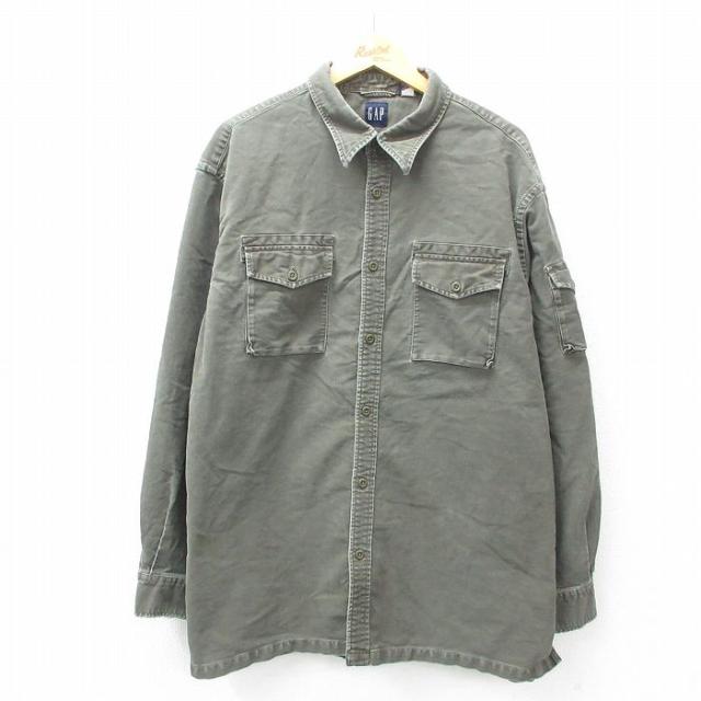 【商品名】 XL★古着 ギャップ GAP 長袖 ブランド シャツ メンズ 90年代 90s ロング丈 コットン 薄紺他 ストライプ【spe】