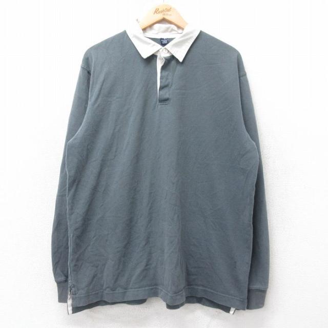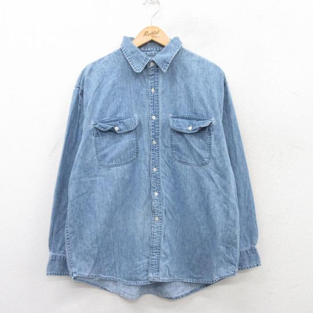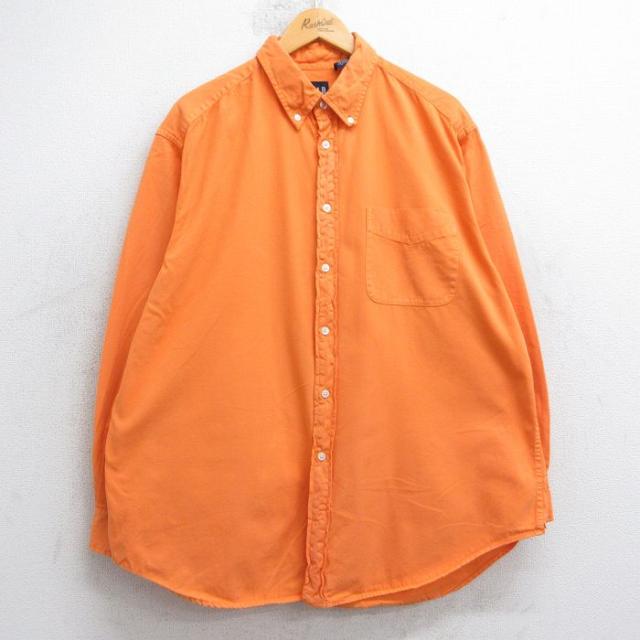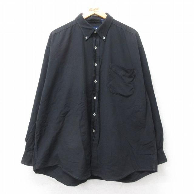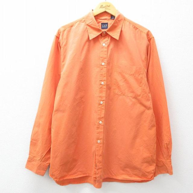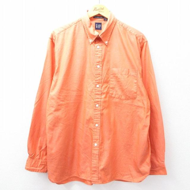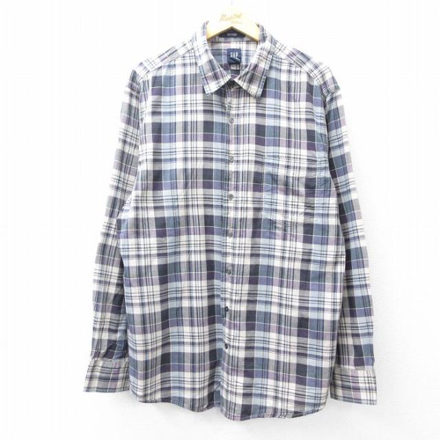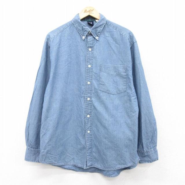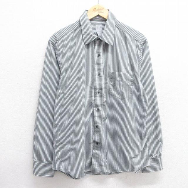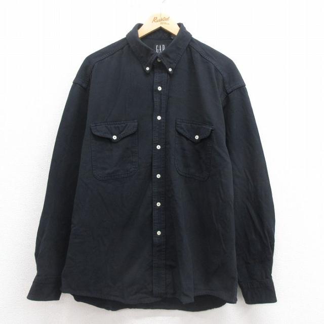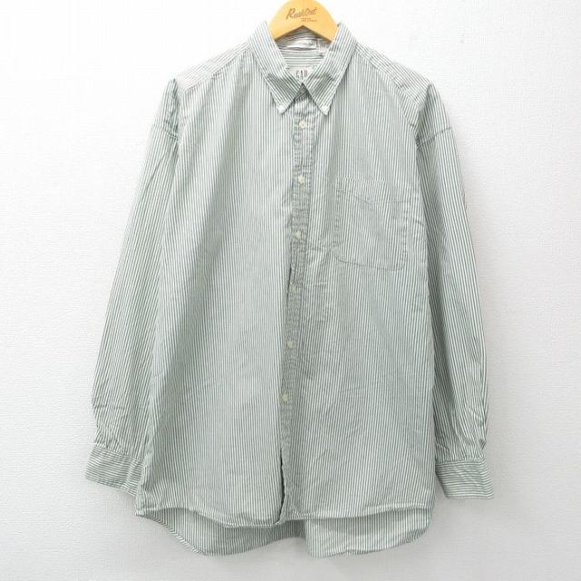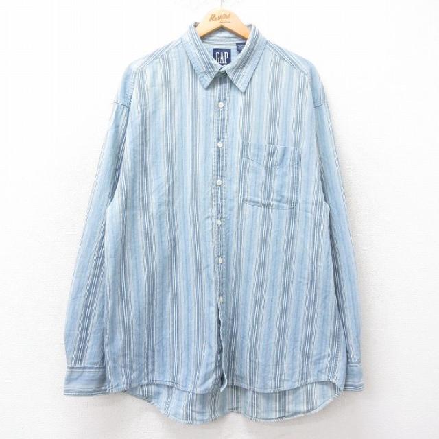 古着 ギャップ GAP 長袖 ブランド シャツ メンズ 90年代 90s ロング丈 コットン 薄紺他 ネイビー ストライプ spe XLサイズ 中 中古 古着