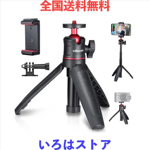 Ulanzi MT-08 三脚 スマホ + スマホクリップ カメラ三脚 小型 自撮り棒 伸縮 3段 スマホ ビデオカメラ 三脚 自撮り棒 ホットシュー付き