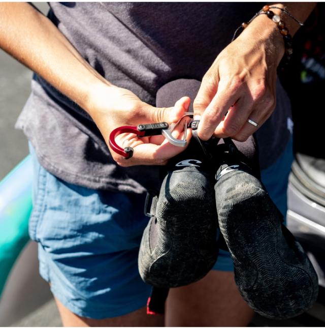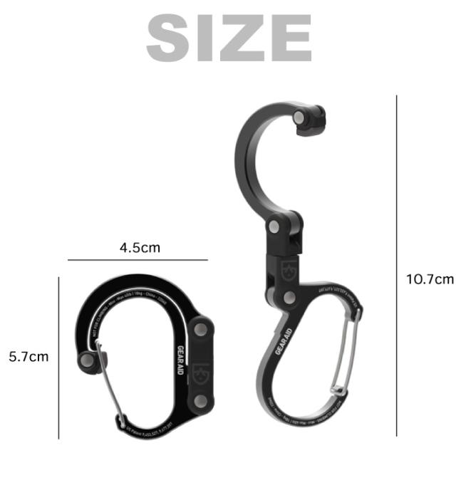 ミニマルなデザインで持ち運びにも便利なミニサイズのカラビナ型フック。
